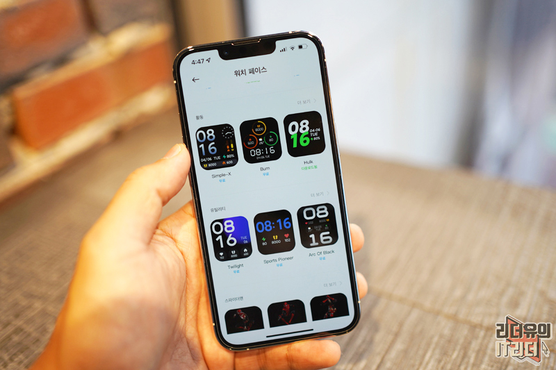 해당 카테고리에 맞게 다양한 워치페이스를 선택할 수 있습니다. 디자인도 예쁘고 화면도 커져서 더욱 감각적인 스마트워치 사용을 할 수 있습니다.