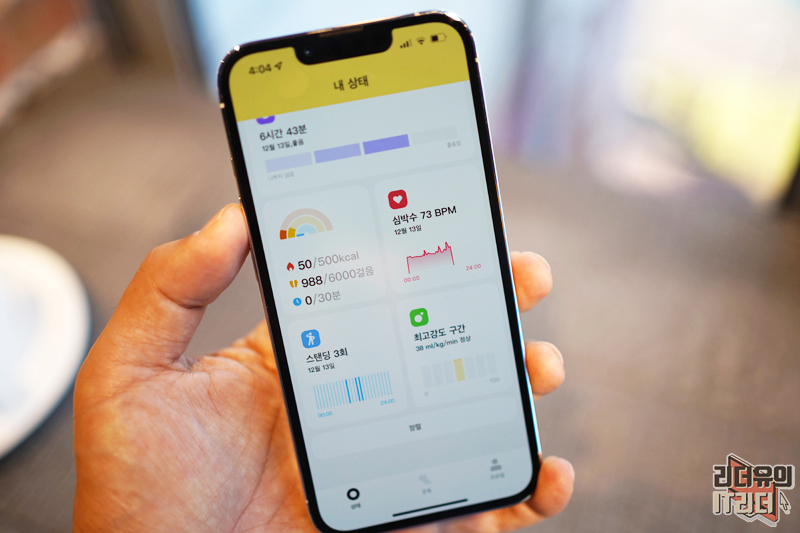 그리고 스마트워치에서 봤던 정보들을 스마트폰 앱에서 보기 좋게 관리하고 있습니다.