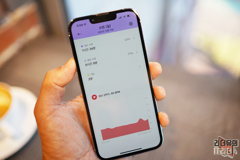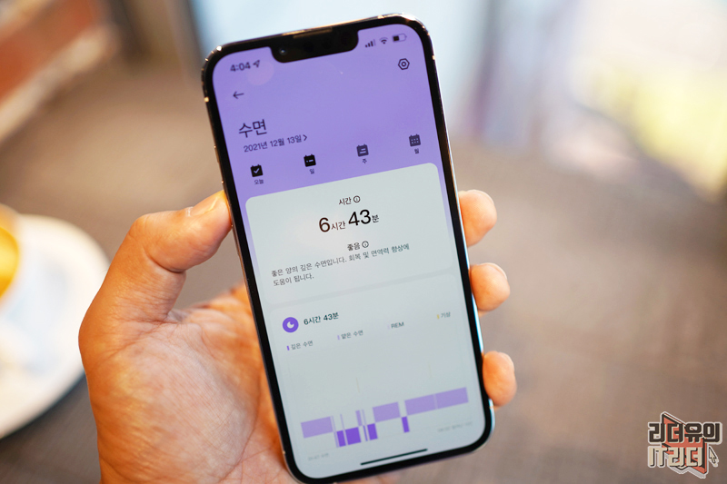 수면 기록도 어떻게 수면을 하고 있는지 단순히 시간만 체크하는게 아닌 건강 관리를 정교하게 하고 있음을 알 수 있습니다.