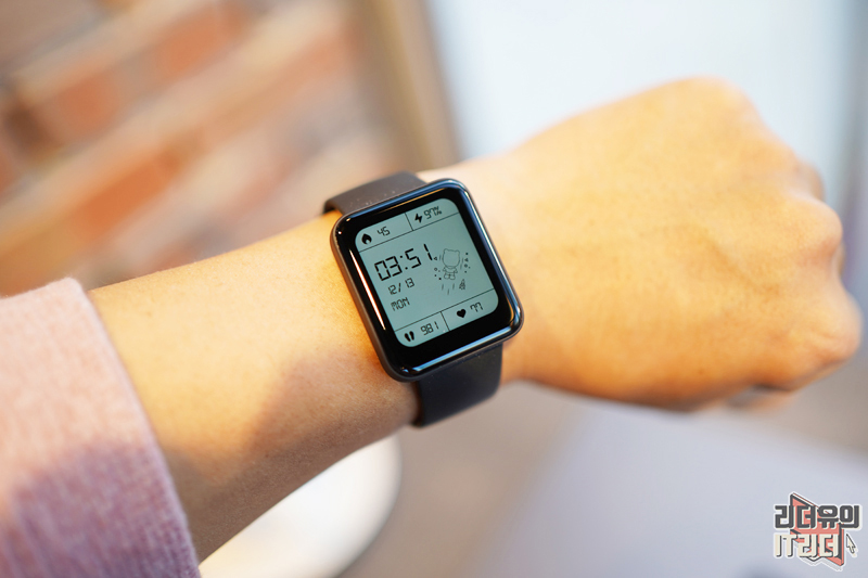 얼핏보면 애플워치 같은 사각형의 디자인으로 되어 있어 고급스럽고 세련된 디자인 매력을 느낄 수 있습니다. 참고로 해상도는 320 x 360 HD 해상도를 가지고 있습니다. 선명하고 색 표현도 좋아서 저렴해 보이지 않는다는게 매력 포인트 입니다. 진정한 가성비 스마트워치 입니다.