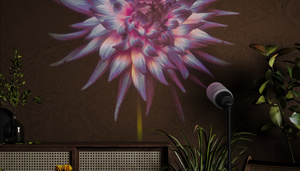그리고 인테리어 조명으로도 사용할 수 있게 했습니다. 전용 렌즈 캡을 씌우면 이미지가 투영돼 다채로운 빛을 내는 무드 조명이 됩니다.