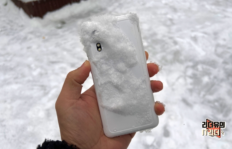 그리고 얼마전 내린 눈속에서도 아무런 걱정 없이 사용할 수 있는 스마트폰입니다. 저렴한 방수폰의 매력!! 확실히 물로 부터 자유롭다는 건 매력적인 부분입니다.