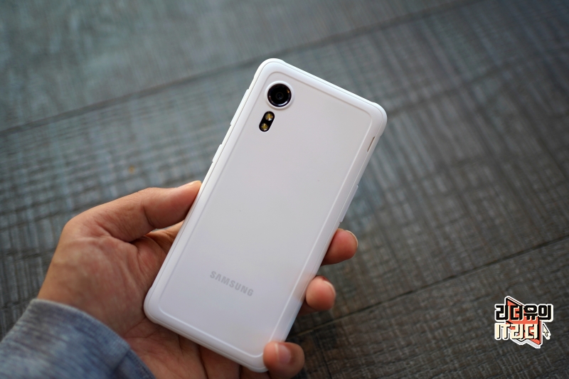 삼성 갤럭시 엑스커버5 (XCover5) 후면 모습입니다. 무광의 화이트 색상으로 산뜻한 디자인이 매력적입니다. 참고로 블랙 색상의 경우 카메라 영역에 레드 포인트가 들어가는데 삼성 갤럭시 엑스커버5 (XCover5) 화이트 색상은 카메라 영역도 화이트 색상입니다.