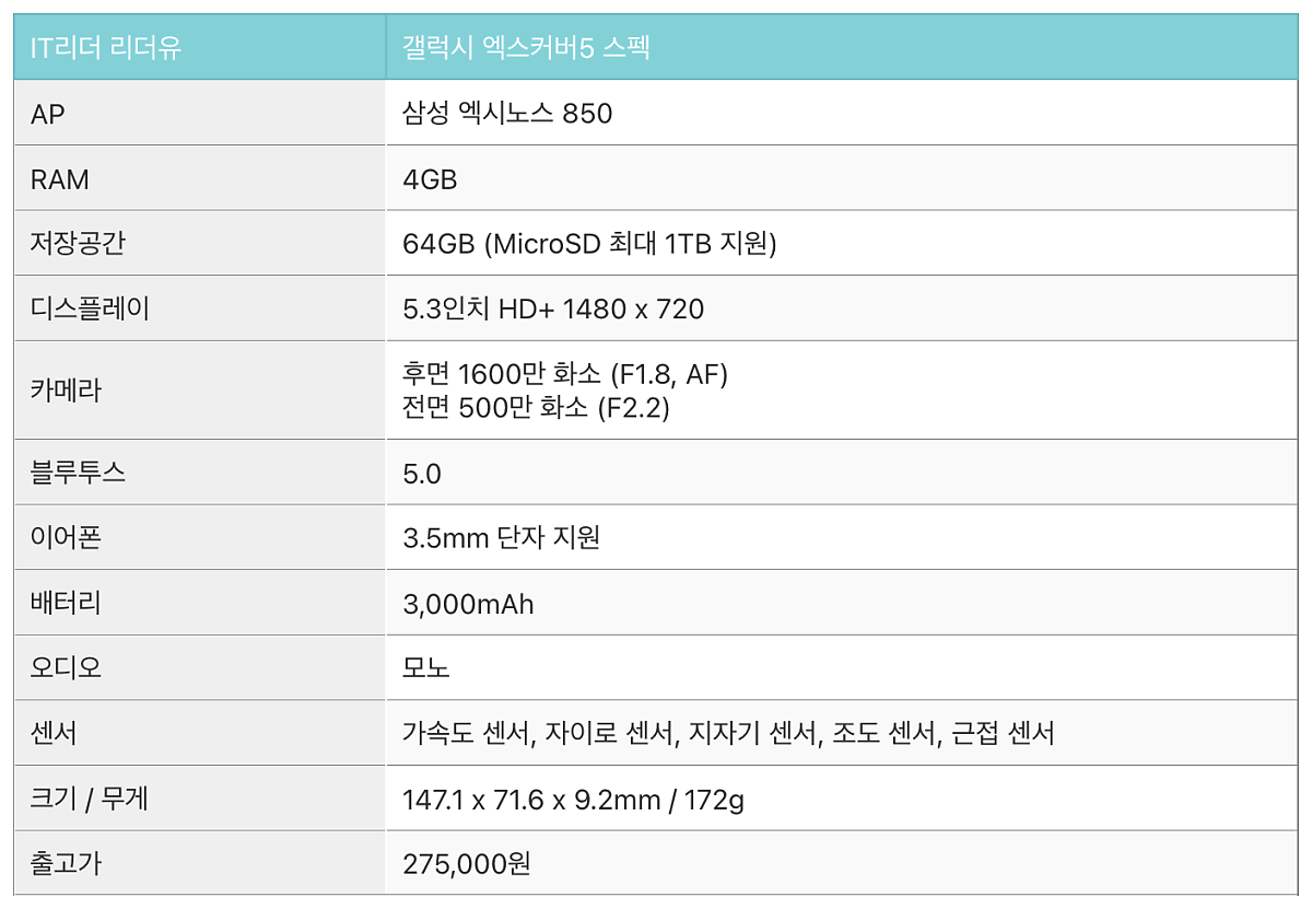 삼성 갤럭시 엑스커버5 (XCover5) 스펙, 성능은?