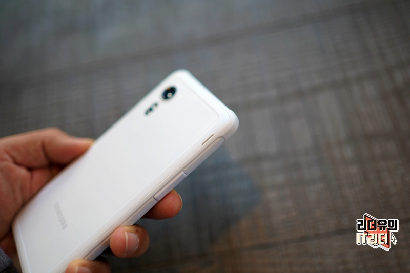 삼성 갤럭시 엑스커버5 (XCover5) 후면 모습입니다. 무광의 화이트 색상으로 산뜻한 디자인이 매력적입니다. 참고로 블랙 색상의 경우 카메라 영역에 레드 포인트가 들어가는데 삼성 갤럭시 엑스커버5 (XCover5) 화이트 색상은 카메라 영역도 화이트 색상입니다.