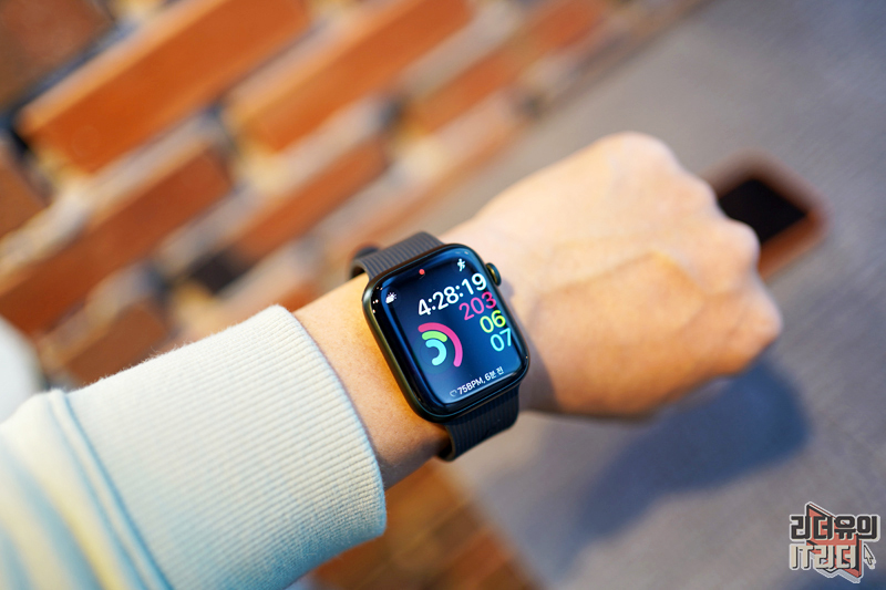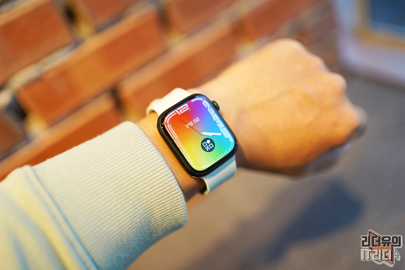 다양한 애플워치7 워치페이스와 조합한 모습입니다. 블랙 색상이니 어떤 워치페이스든 최적의 조합을 보여주고 있습니다.