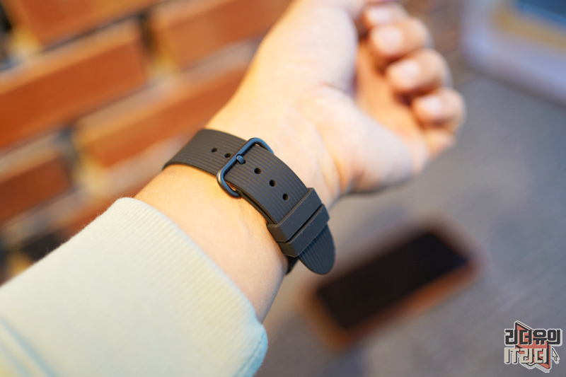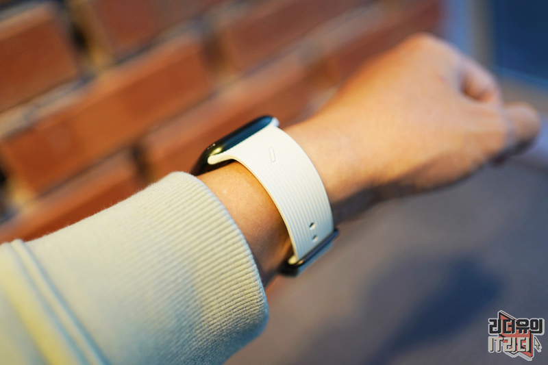 손목에 착용한 느낌도 심플하니 잘 어울립니다. 톡톡튀는 개성은 없지만 블랙의 묵직한 매력이 있어 기본 밴드로 사용이 가능합니다. 무엇보다 전천후로 사용할 수 있어 좋습니다.