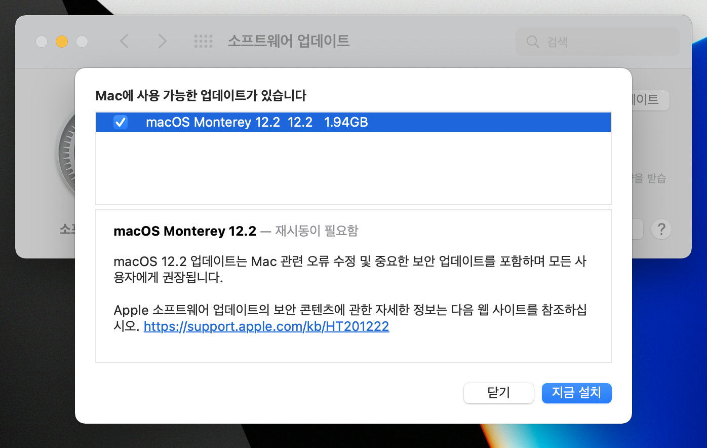 맥OS 몬터레이 12.2 (macOS monterey 12.2) 달라진점 잘 파악하셨죠? 큰 변화는 아니지만 보안 이슈와 소소한 개선이 이루어졌으니 지금 바로 업데이트 해보시기 바랍니다.