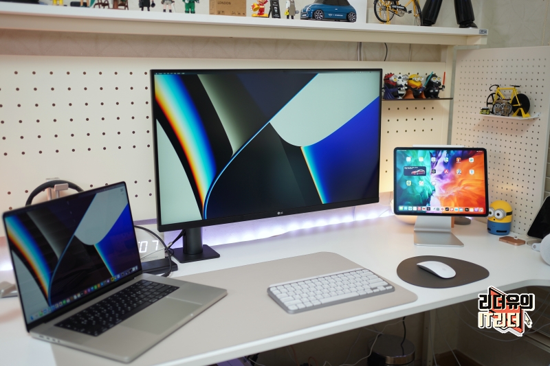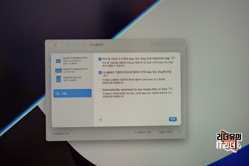 이번엔 반대쪽으로 커서를 이동해서 연결해 봤습니다. 참고로 유니버설 컨트롤은 모니터에 연결해서도 사용이 가능합니다. 커서를 가져가면 조금 있다가