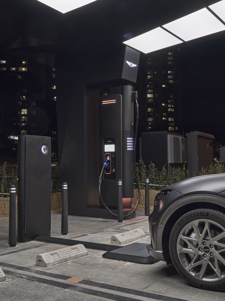 그리고 '마이 제네시스' 앱을 통해 충전소 위치 및 사용 정보 확인, 충전 대기표 발급 등의 기능을 지원합니다.