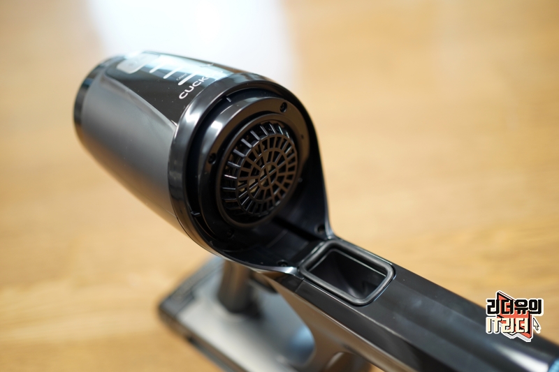 쿠쿠 파워클론 무선청소기 CVC-B1010UG 먼지통이 분리된 모습입니다. 싸이클론으로 1차 큰 먼지가 이 곳에 담기게 됩니다.
