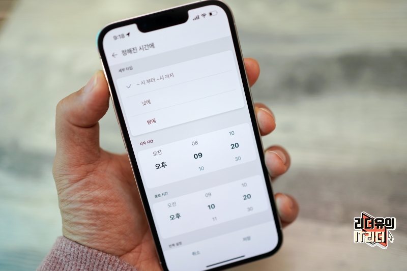 그리고 직접 선택도 가능한데요. 정해진 시간을 설정해 몇 시에 할 것인지, 언제부터 언제까지 할 건지, 요일 반복 설정 등 섬세한 설정을 할 수 있고