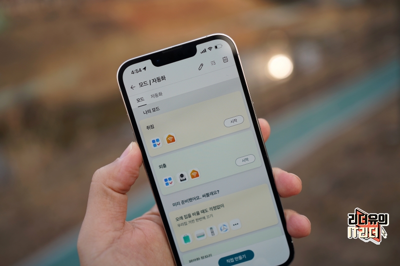 이런 상황 설정은 다양한 조건과 동작을 설정할 수 있습니다. 리더유 홈에 가까워지면 10분 후 자동화를 시작해요 등등 다양한 상황 조건을 만들 수 있습니다.