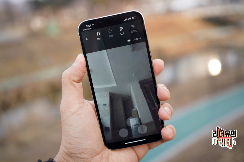 그리고 LG 로봇청소기 코드제로 R9은 홈뷰 기능도 지원하는데요. 집안 보안 기능 및 카메라 모니터링을 LG ThinQ 앱으로 할 수 있어 다양한 용도로 로봇청소기를 활용할 수 있습니다.