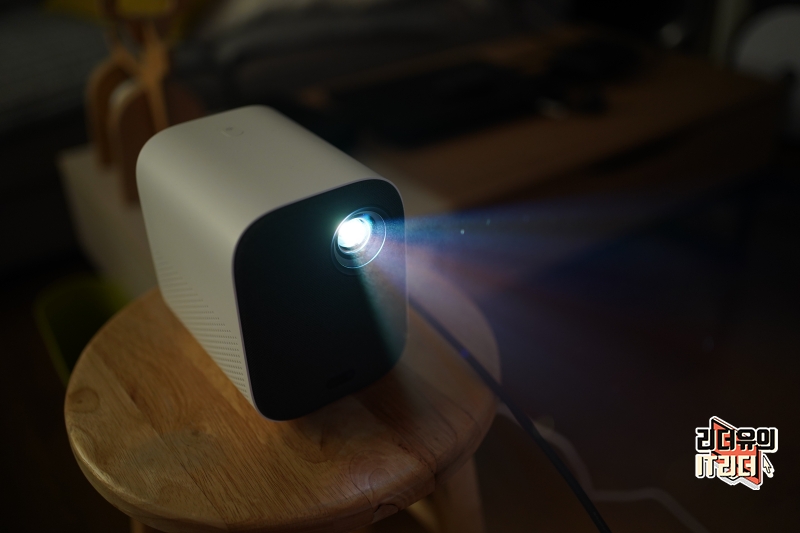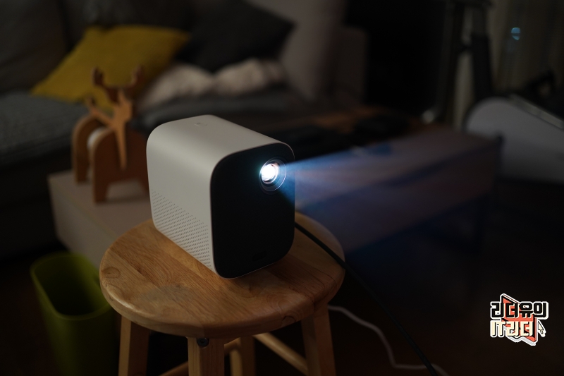 샤오미 빔프로젝터 m055mgn을 사용하는 모습입니다. 컴팩트한 빔프로젝터라 어디든 가볍게 배치해서 사용할 수 있습니다.