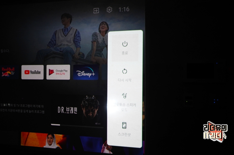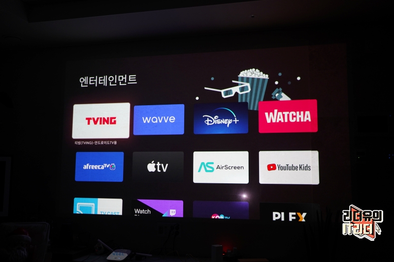 샤오미 빔프로젝터 m055mgn은 별도의 기기를 연결하지 않고도 이 자체로 사용할 수 있는 안드로이드 TV 9.0 OS가 탑재되어 있습니다. 그래서 일반적인 스마트TV처럼 사용할 수 있는데요. 넷플릭스, 디즈니 플러스, 애플 TV, 티빙 등등 무궁무진한 콘텐츠 활용이 가능합니다.