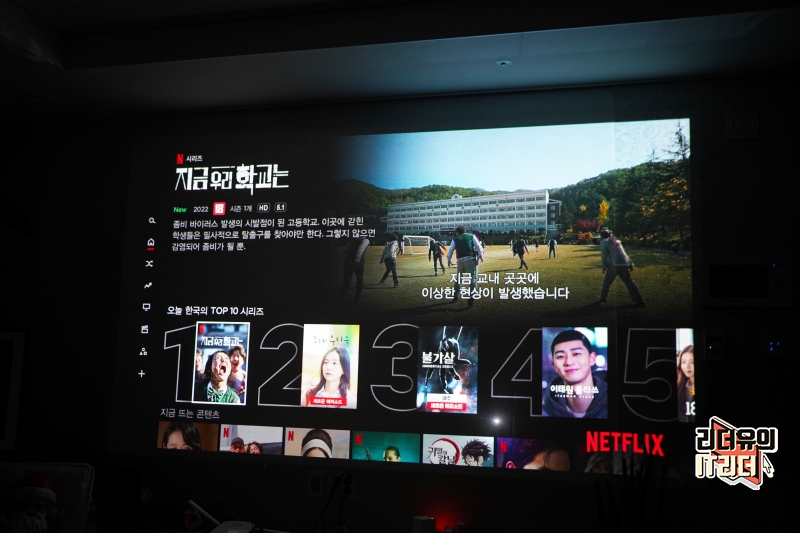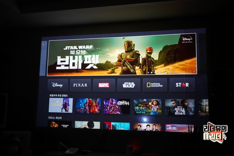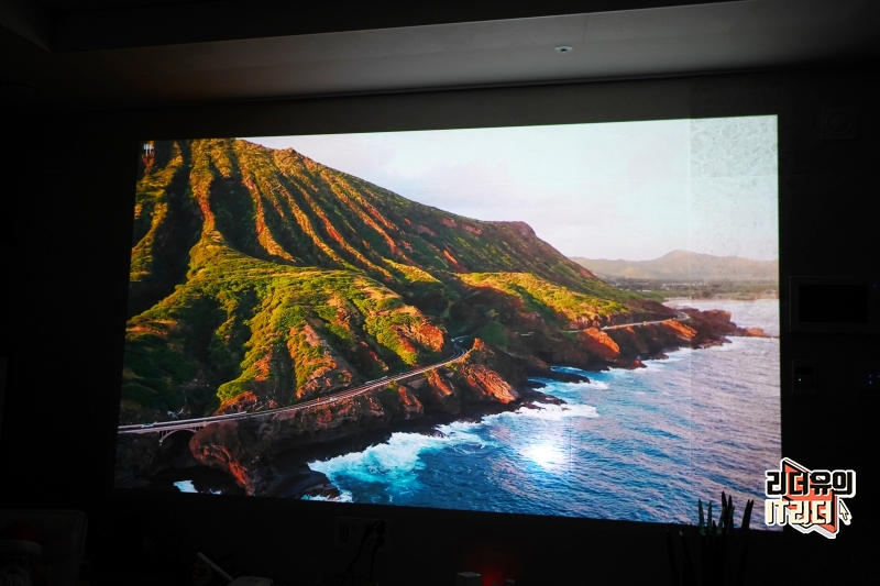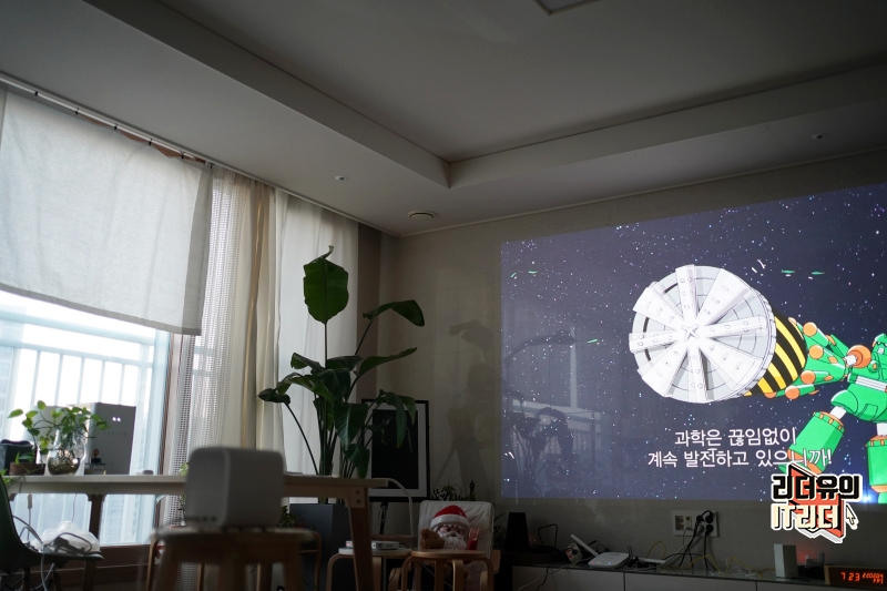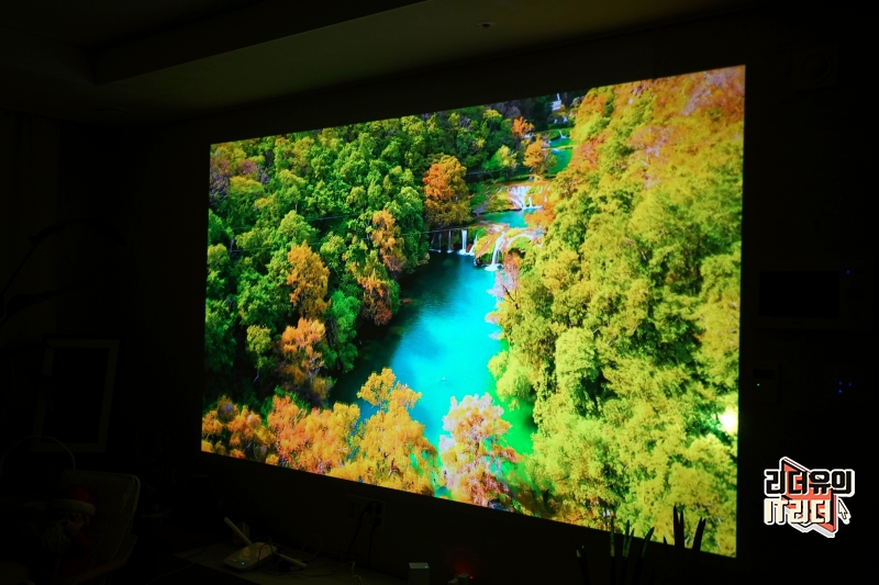 스크린이 아닌 일반 벽에 사용했는데도 정확한 색과 선명도를 보여주고 있습니다. 500 안시루멘을 가지고 있어 렌즈 밝기가 좋고 색 표현력도 좋습니다. 해상도는 1080p FHD 고화질로 볼 수 있고 HDR10을 지원해 생동감 있는 컬러 표현을 하고 있습니다.
