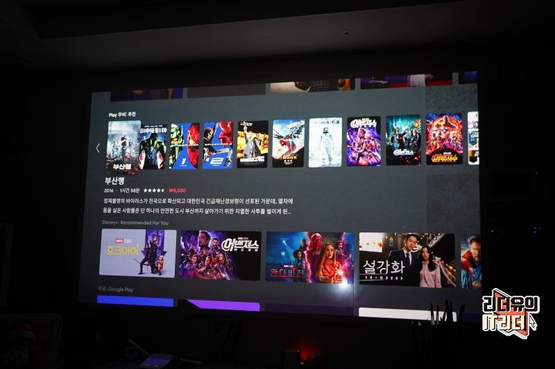 캠핑장 가서 영화 한편 보려고 스마트폰 연결하고 노트북 연결하는 경우들 많죠. 샤오미 빔프로젝터 m055mgn은 그럴 필요 없습니다. 그냥 이 자체가 스마트TV이니 보고 싶은 건 다 볼 수 있습니다.