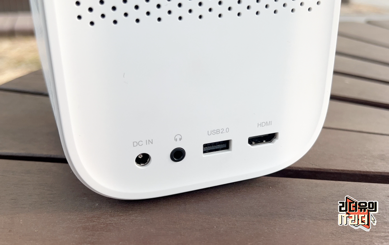 샤오미 빔프로젝터 m055mgn 옆 모습입니다. 양 옆에 각각 5W 스피커를 배치해 사운드 경쟁력도 갖췄습니다. 그래서 독특하게 별도의 블루투스 스피커 기능도 하고 있습니다. 빔프로젝터와 스피커 역할을 동시에 하면서 조금 더 다양한 사용씬을 가져갈 수 있습니다.