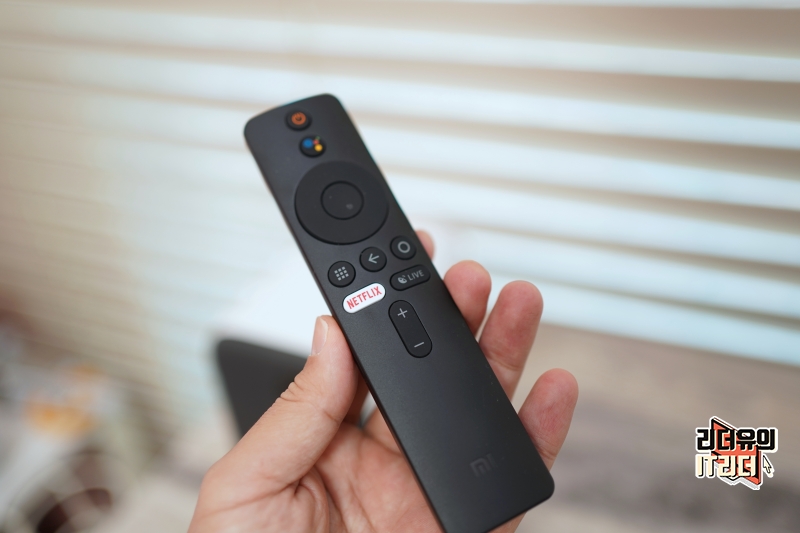 샤오미 빔프로젝터 m055mgn 리모컨 입니다. 윗면에 라운딩이 들어간 세련된 디자인을 가지고 있고 직관적인 기능 버튼으로 구성되어 있습니다. 샤오미 빔프로젝터 m055mgn은 안드로이드 TV 기능을 지원하기 때문에 관련 컨트롤을 빠르게 할 수 있는데요. 구글 어시스턴트 버튼으로 음성 컨트롤을 쉽게 할 수 있고 넷플릭스 핫키도 있어 넷플릭스 기능을 어떤 화면에서나 빠르게 접근할 수 있습니다.