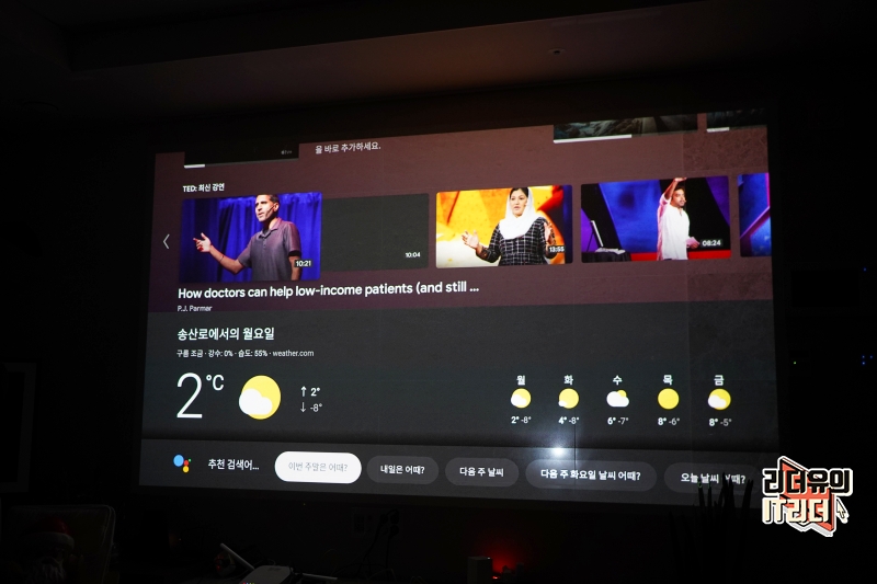 샤오미 빔프로젝터 m055mgn은 구글 크롬캐스트도 내장되어 있어 스마트폰에서 보던 콘텐츠를 빠르게 대화면으로 연결해서 볼 수 있습니다. 넷플릭스, 유튜브, 쿠팡 플레이 등등 크롬캐스트를 지원하는 서비스를 더욱 매력적으로 사용할 수 있습니다.