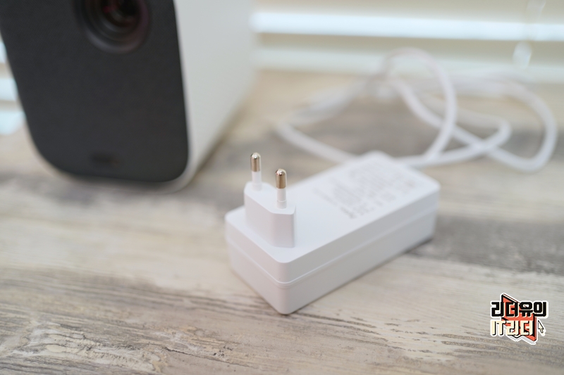 참고로 이 제품은 작은 사이즈라 무선도 가능할 것 같지만 유선으로만 사용이 되는 제품입니다. 어댑터 일체형 케이블을 통해 전원 연결 후 사용하는 빔프로젝터 입니다.