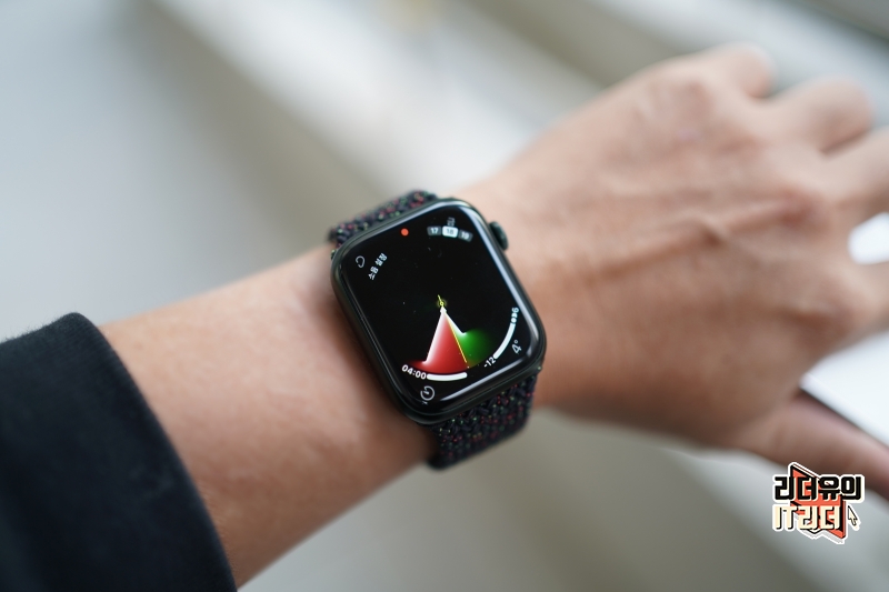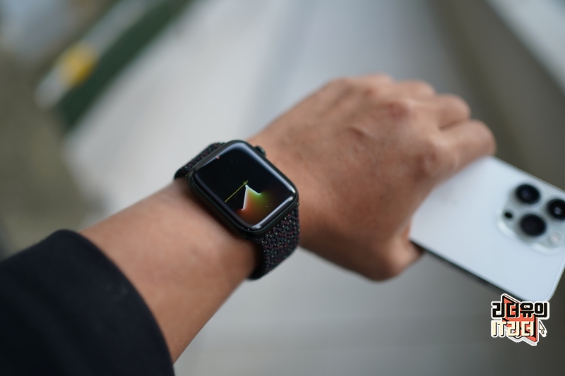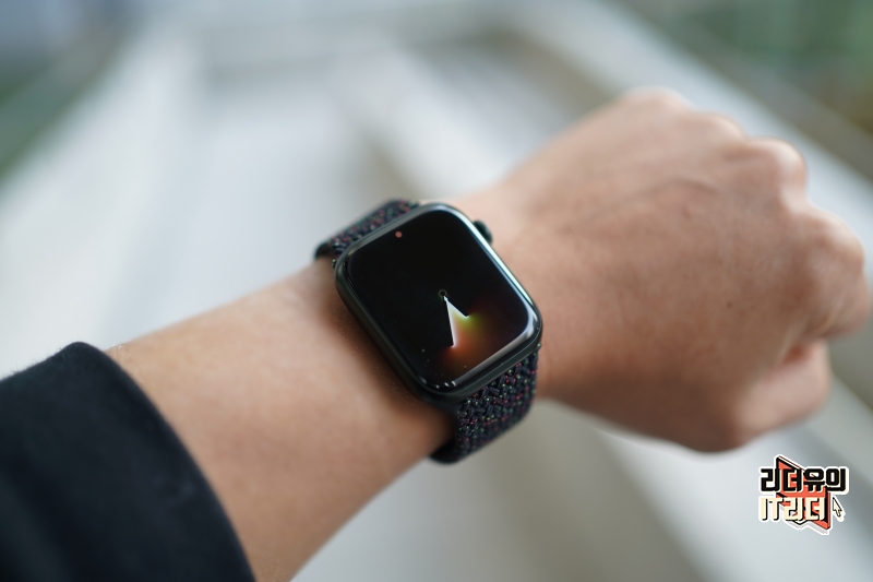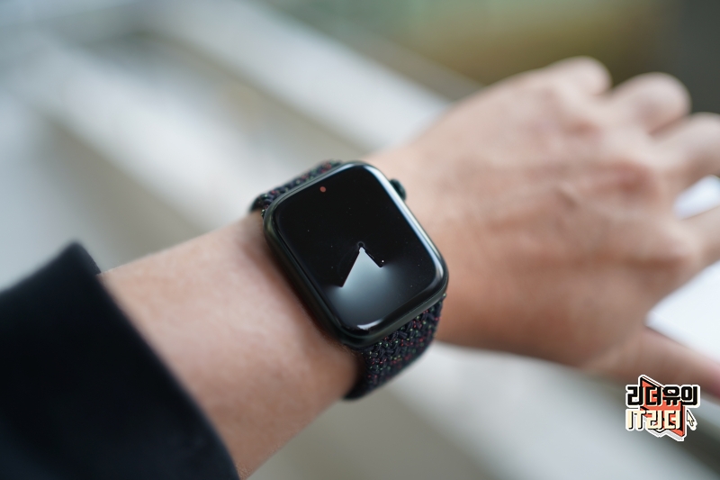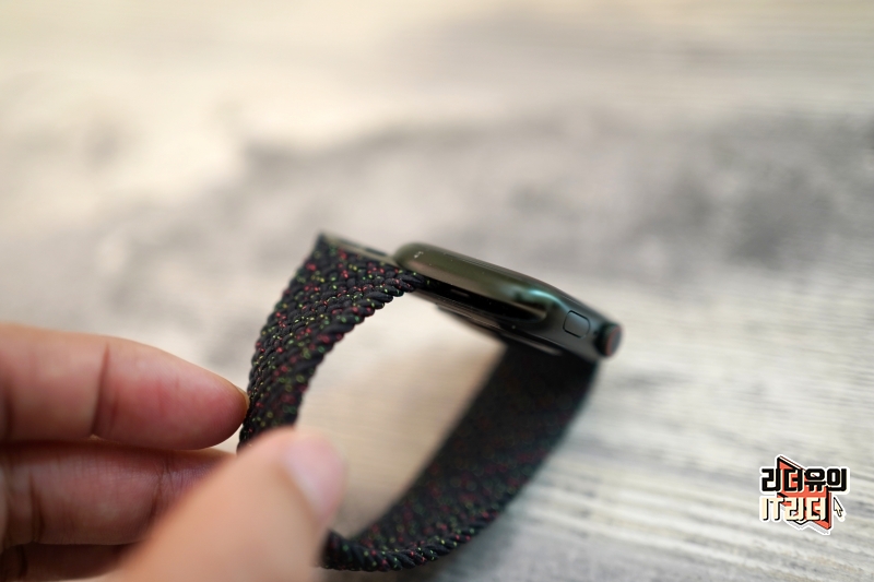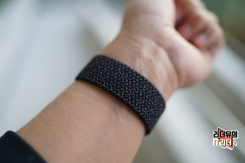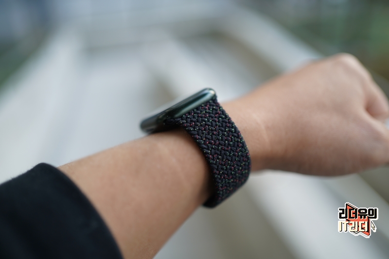 애플워치7과 블랙 유니티 브레이드 솔로 루프 밴드 조합