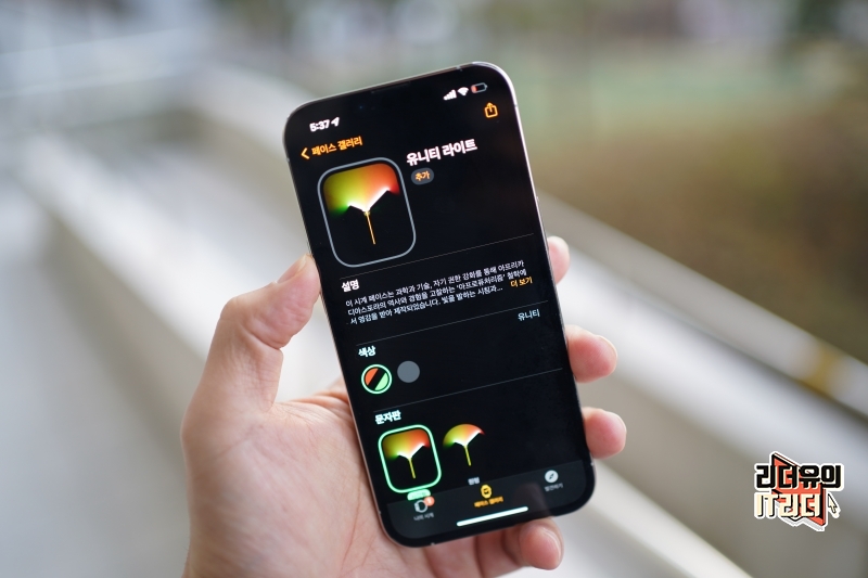 애플워치7에 블랙 유니티 브레이드 솔로 루프 밴드를 착용한 모습입니다. 유니티 라이트 워치페이스와 완벽한 조합을 느낄 수 있는데요. 유니티 라이트 워치페이스는 2D 레이트레이싱으로 디자인된 워치페이스로 빛과 그림자를 그려내듯 움직이는 시계 바늘을 보여주고  있습니다. 시간의 흐름에 따라 역동적으로 변하는 빛과 색의 세련된 조합을 확인해 볼 수 있습니다.