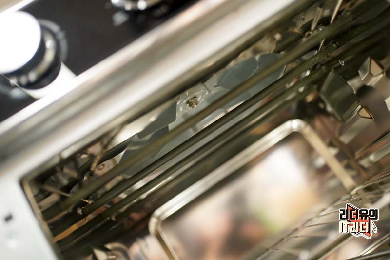 그리고 내부 위를 보면 상부 4중 열선이 있는걸 볼 수 있고 그 위에 상부 송풍팬이 있어 열을 효과적으로 순환 시켜 주고 있습니다.