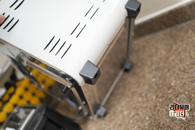 바닥면에는 4개의 다리가 있는 구조 입니다. 열이 바닥으로 전해지지 않으니 안전하게 사용할 수 있습니다.