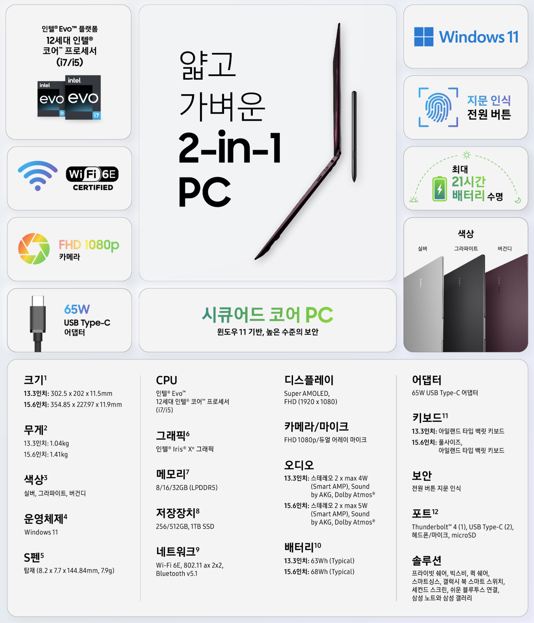 삼성전자가 2022년 2월 28일 '삼성 갤럭시 MWC 이벤트 2022를 통해 갤럭시 북2 프로, 갤럭시 북2 프로 360 노트북 시리즈를 공개했습니다. 뭐가 달라졌는지? 새로운 매력은 무엇이 있는지 참고해 보시기 바랍니다.