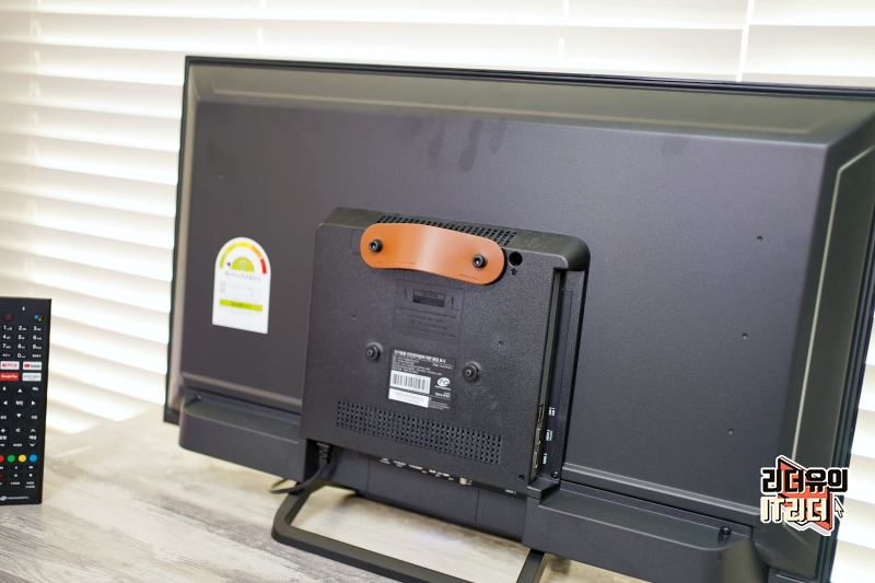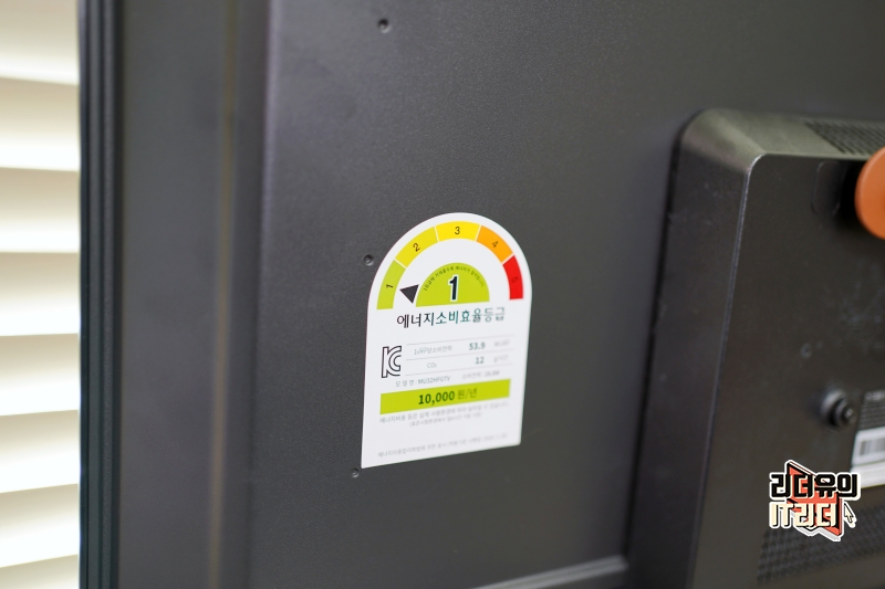 후면에 보면 에너지소비효율 1등급을 인증하는 스티커가 있는데요. 그만큼 에너지 절약에 있어서 의미가 있는 32인치 TV이고 에너지효율 1등급 제품은 구매액의 10% 환급혜택도 있어 더 저렴하게 구입이 가능한 중소기업 TV 입니다.