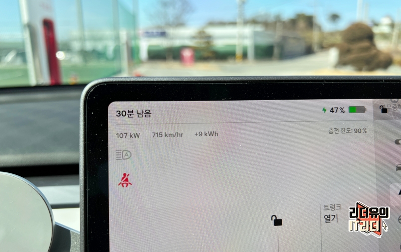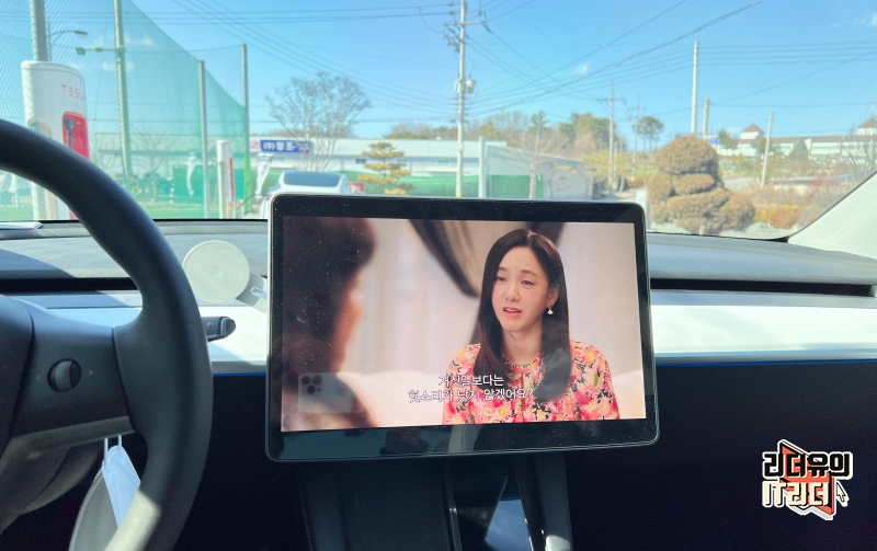 충전하면서 넷플릭스로 드라마를 감상했습니다. ^^ 테슬라의 최대 장점이죠. 다른 전기차들도 이런 부분은 배워야 합니다.