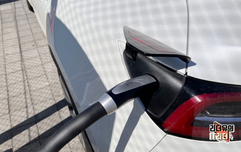 테슬라 수퍼차저 충전은 간단합니다. 그냥 케이블을 꽂아주기만 하면 됩니다.