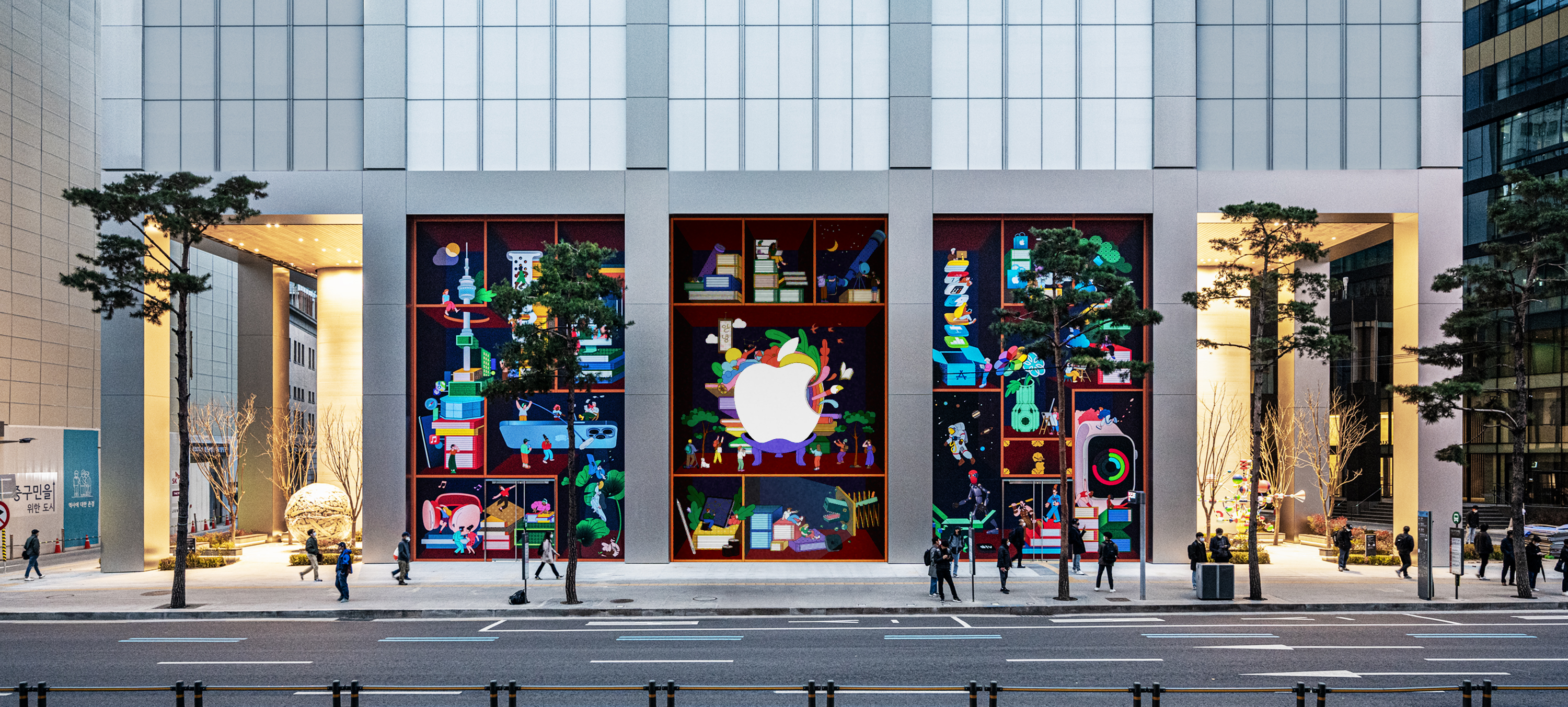 애플 명동 외벽 바라케이드 디자인 자세히 보기!