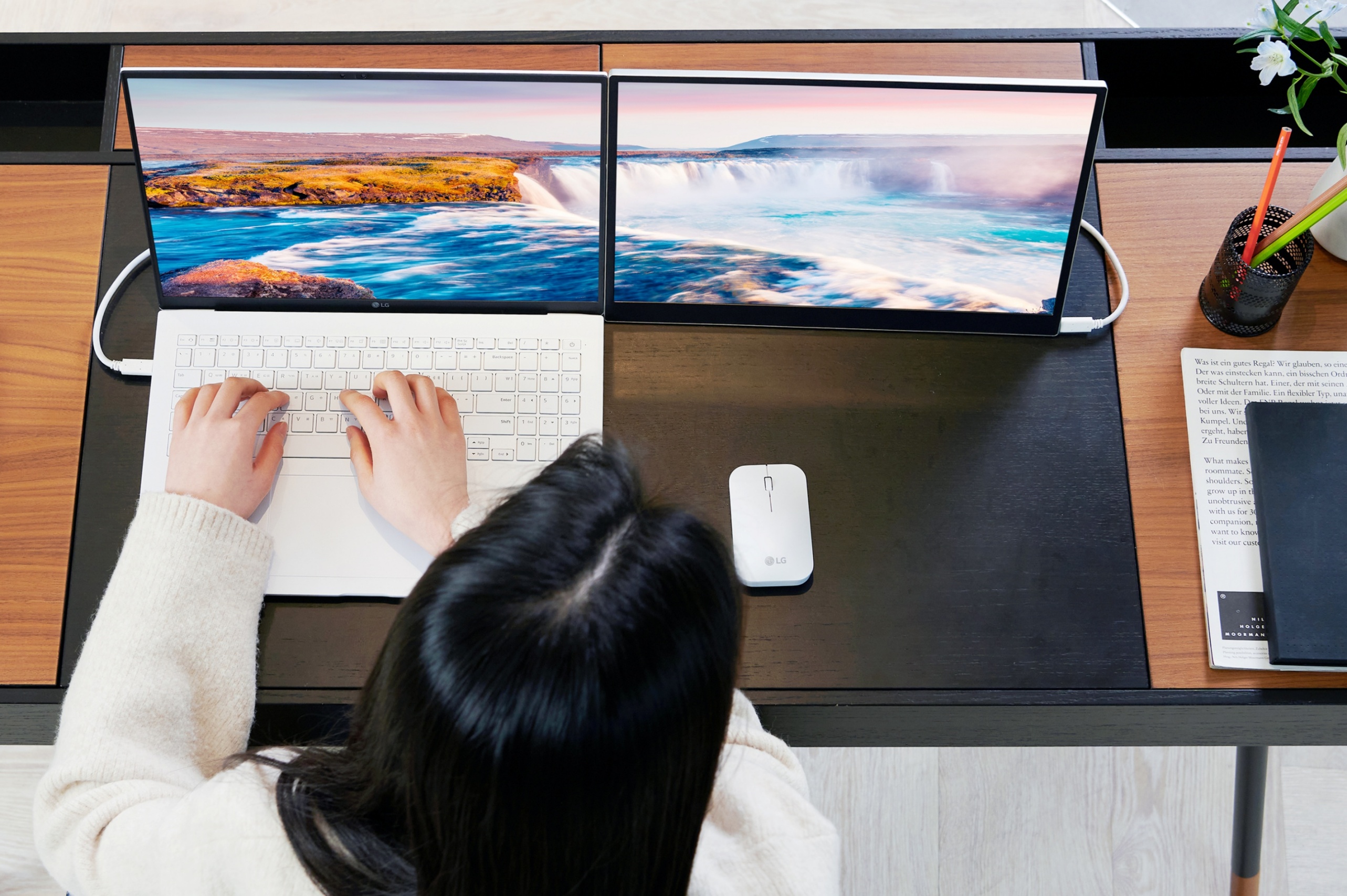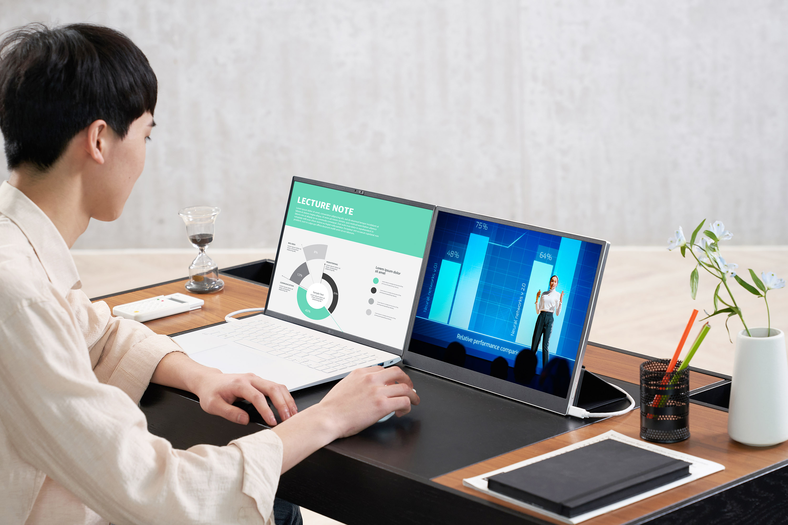 그리고 별도의 모니터를 연결할 경우 두 개의 화면 중 사용자가 보고 있는 화면으로 마우스 포인터나 작업 중인 창을 자동으로 옮겨주는 기능도 합니다.