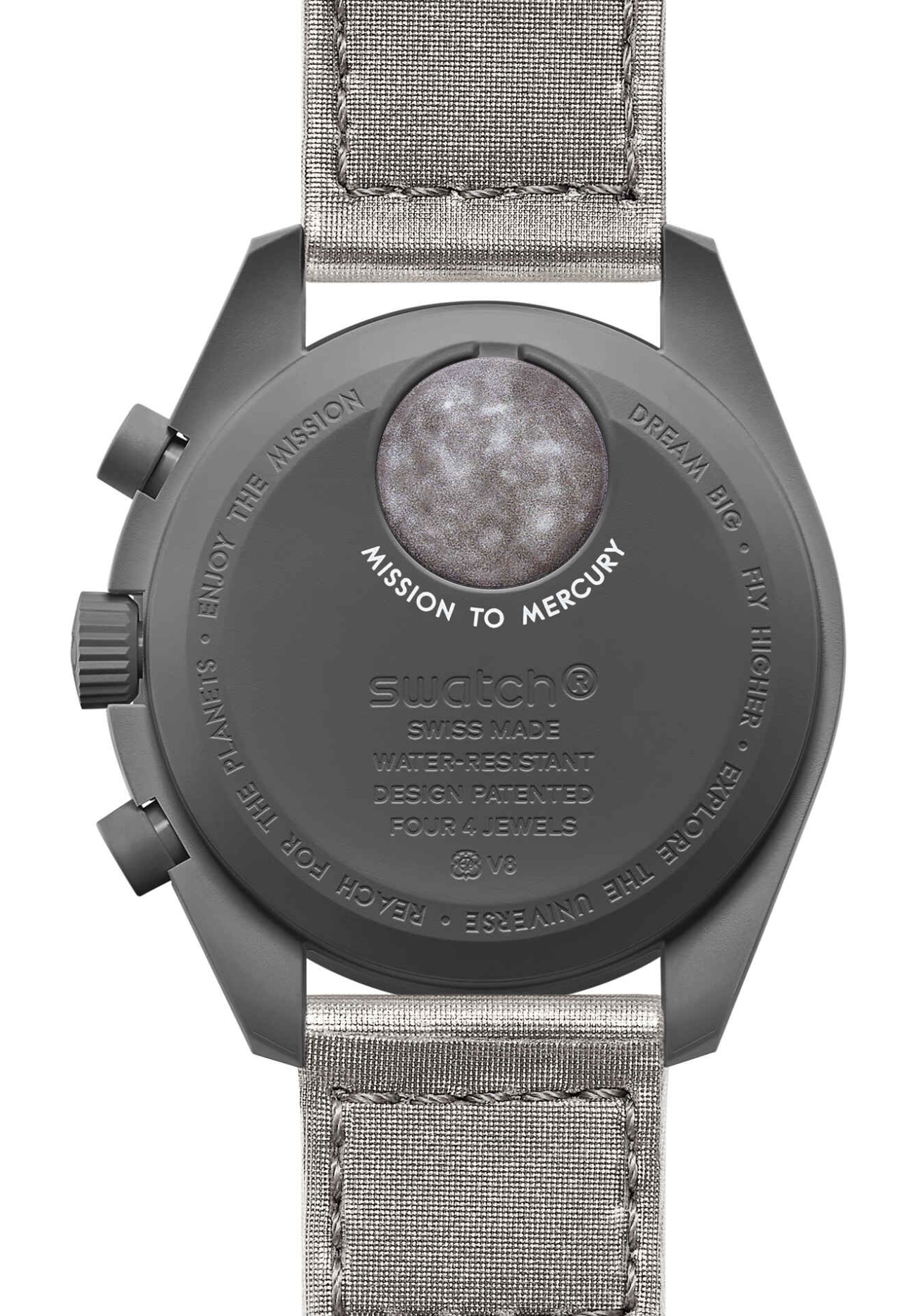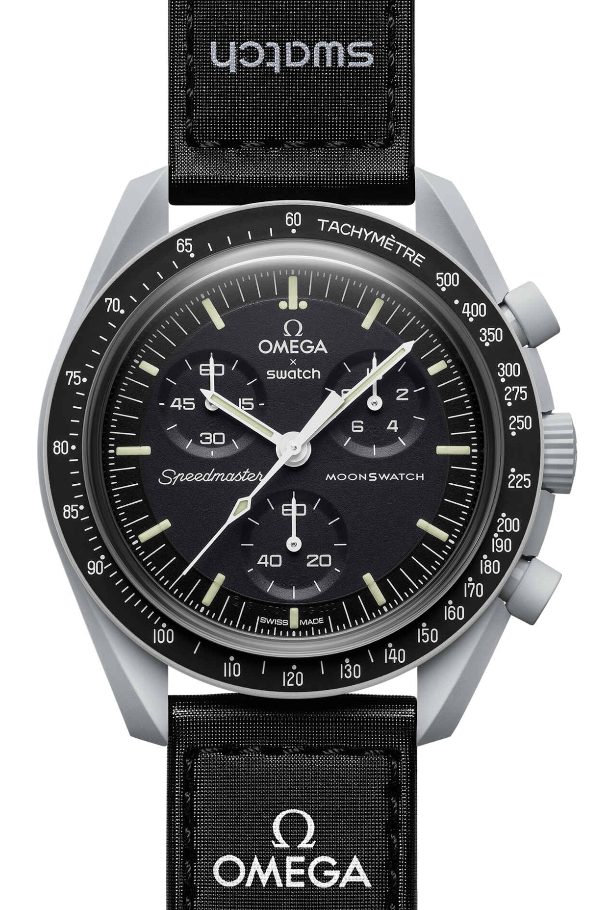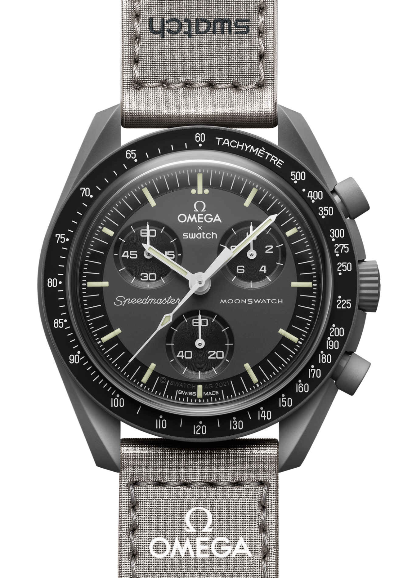 수성을 상징하는 회색이미지의 문스와치 입니다. 짙은 어두운색이라 기본 오메가 시계 디자인을 잘 느낄 수 있는 모델입니다.