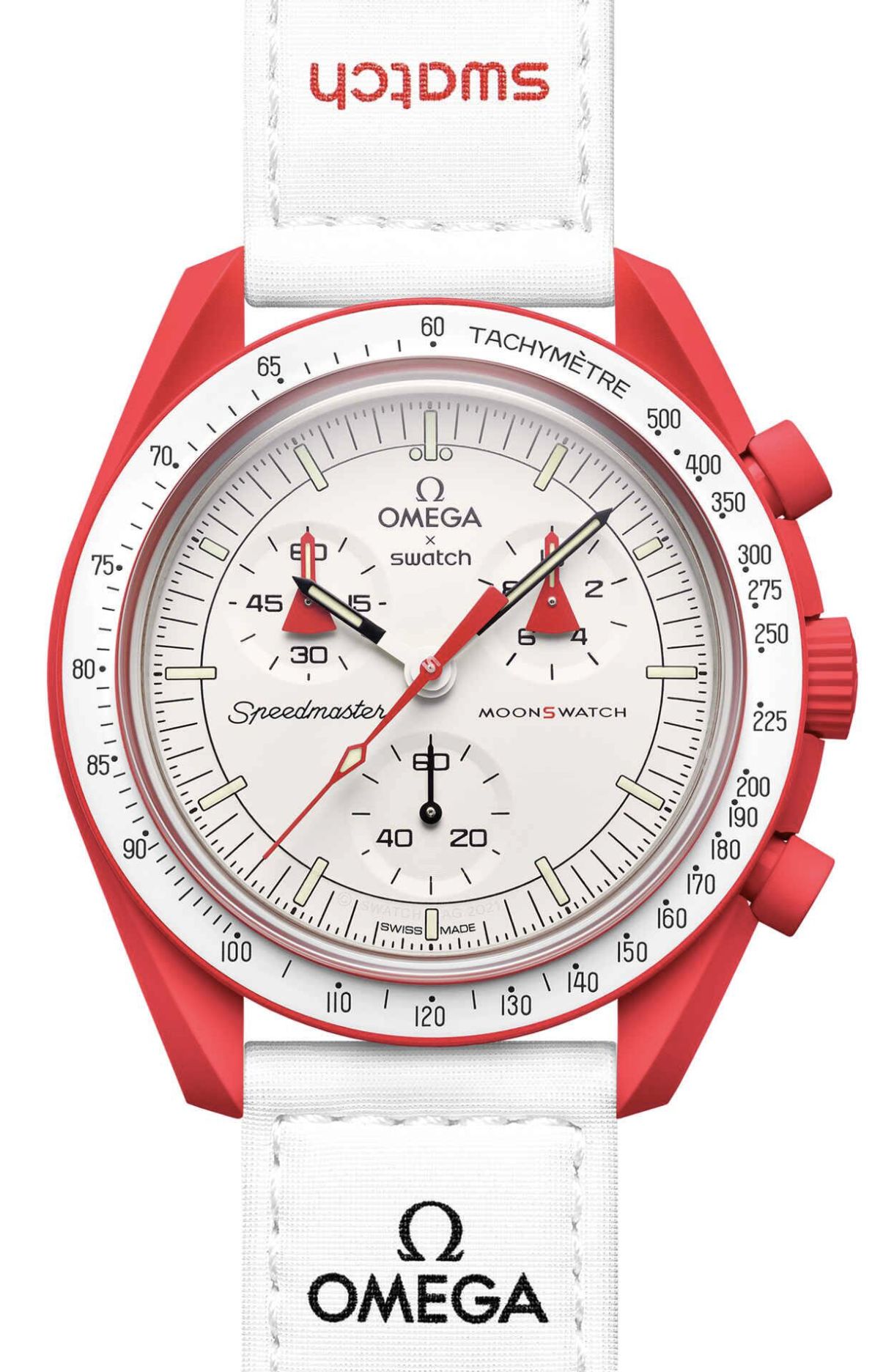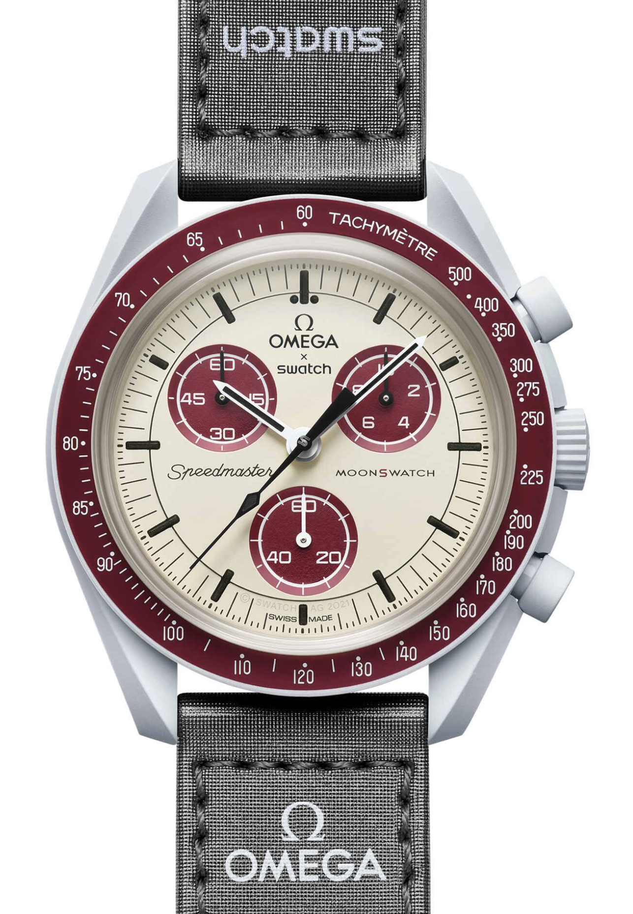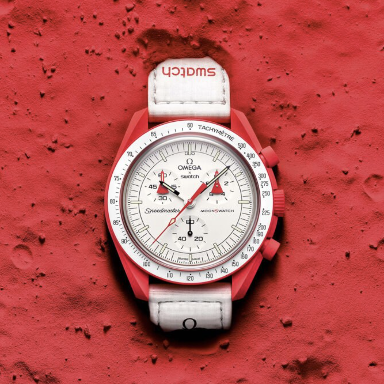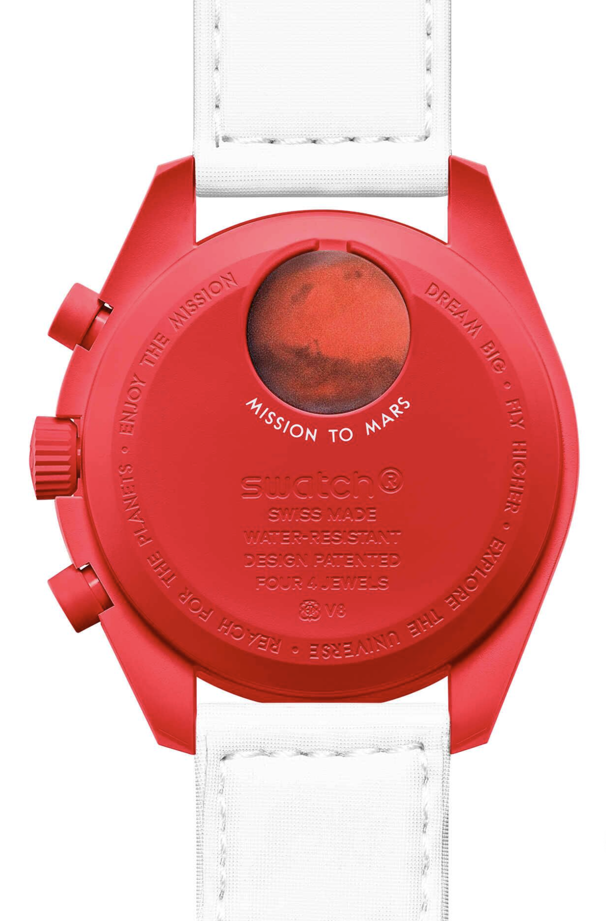 문스와치 화성은 강렬한 레드로 표현되어 있습니다. 컬러풀한 감성으로 오메가에서 볼 수 없는 새로운 디자인을 보여주고 있습니다.
