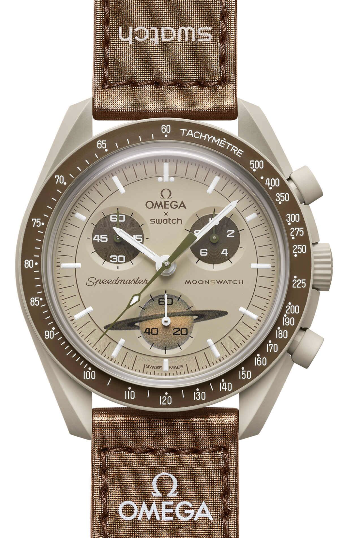 문스와치 토성은 타우페 색상으로 되어 있습니다. 클래식한 컬러의 느낌이 고급스럽게 잘 어울립니다.