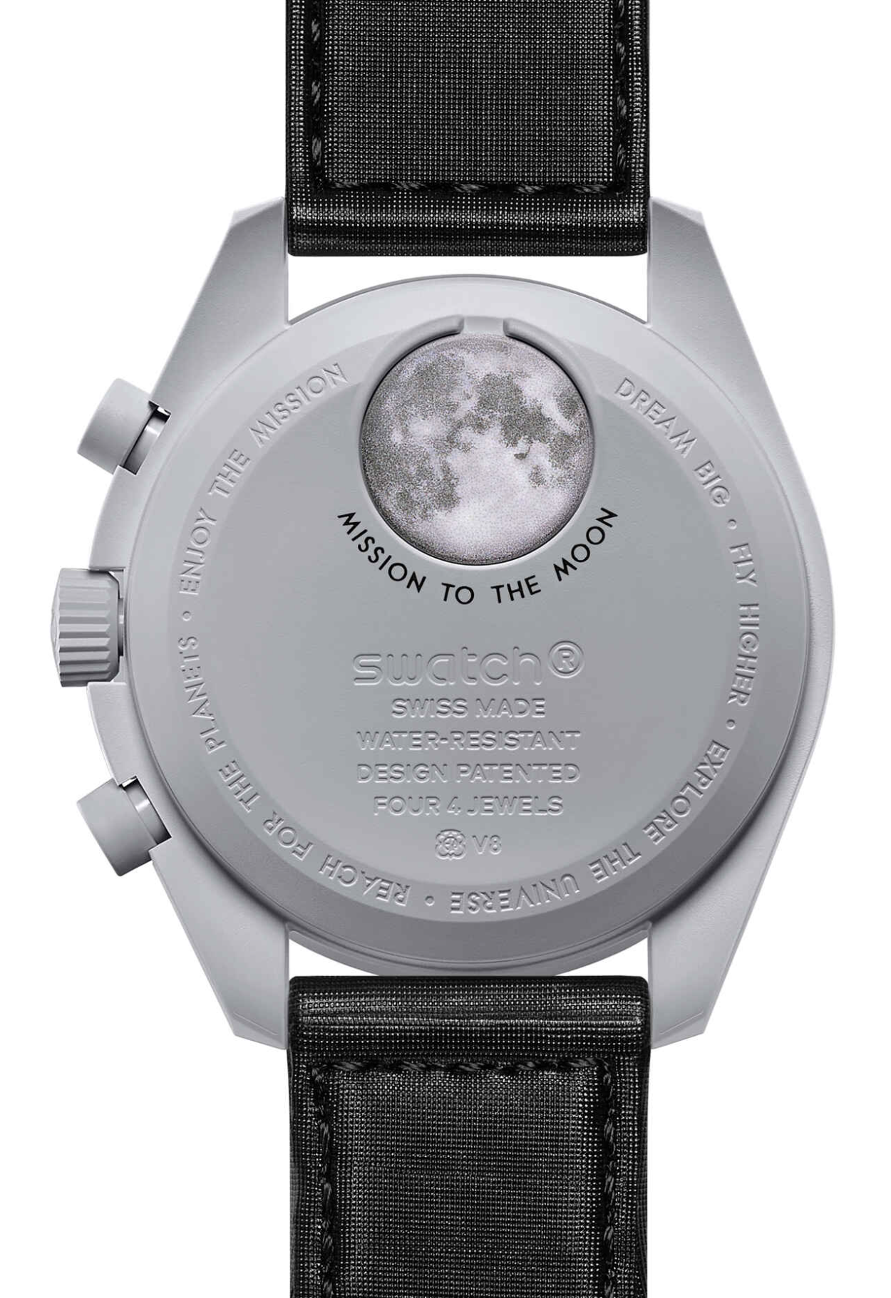 문스와치 달 입니다. 블래과 회색톤으로 시크한 디자인이 좋습니다. 스와치 오메가 콜라보 문스와치 네이밍에 맞게 준비된 시계 입니다.