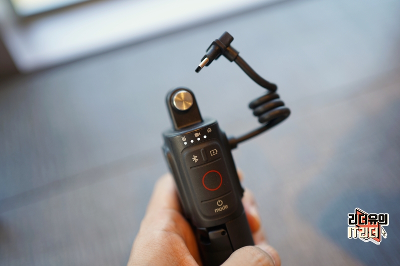 케이블은 돼지 꼬리처럼 말아져 있는데요. 그 이유는 회전이 가능하기 때문입니다. 고프로 장착하고 360도 회전이 가능해서 다양하게 방향을 잡고 사용할 수 있습니다.