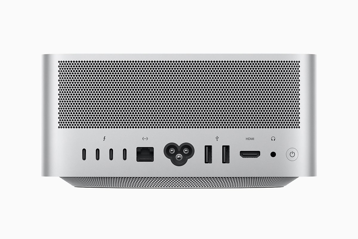 그리고 확장성도 좋습니다. 후면에 디스플레이와 고성능 기기 연결을 위한 4개의 썬더볼트4 포트가 있고 1개의 10Gb 이더넷 포트, 2개의 USB-A 포트, 1개의 HDMI 포트, 하이 임피던스 헤드폰 또는 외부 엠프 스피커용 프로 오디오 잭이 포함되어 있습니다.