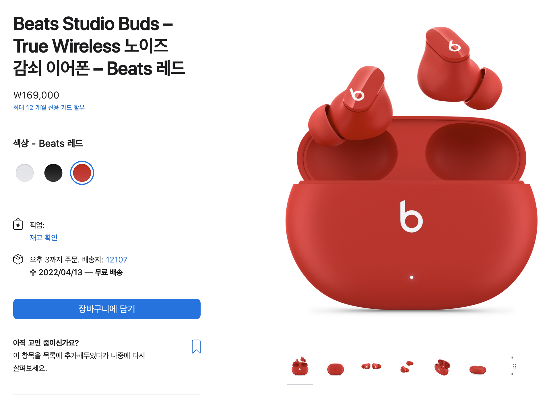 애플 비츠 스튜디오 버즈는 애플의 가성비 라인업으로 저렴한 가격이 경쟁력입니다. 169,000원의 가격이지만 액티브 노이즈 캔슬링 이어폰으로 음악에만 집중할 수 있는 놀라운 사운드를 경험할 수 있습니다.