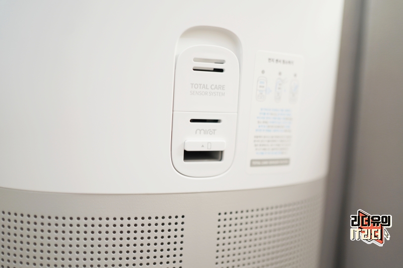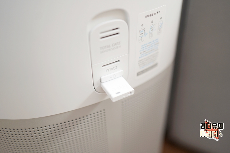 미로 맑음 공기청정기를 보면 독특한 구성품 '미로티'가 들어 있습니다. 메모리 카드처럼 생겼는데요. 이게 스마트폰과 연결을 해주는 센서 역할을 하게 됩니다. 장착 위치는 토탈케어 센서 영역에 있습니다.