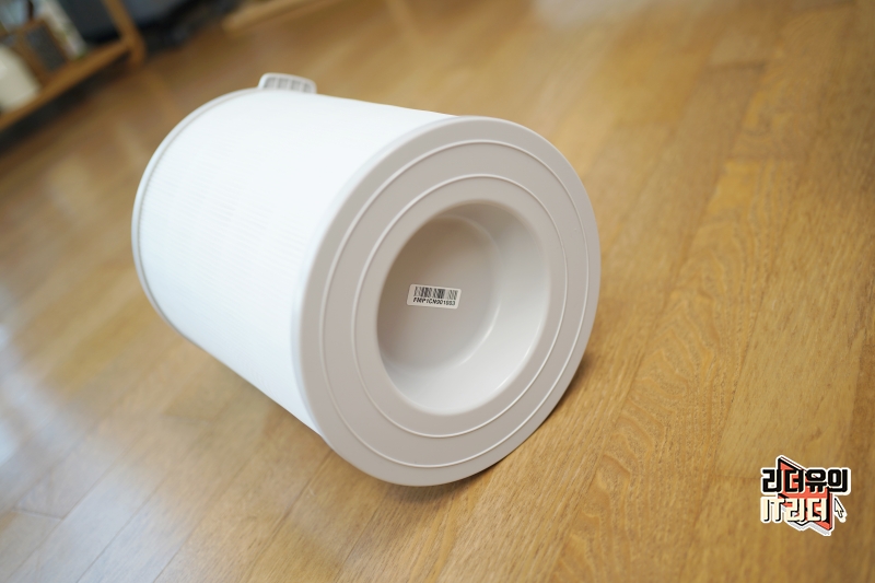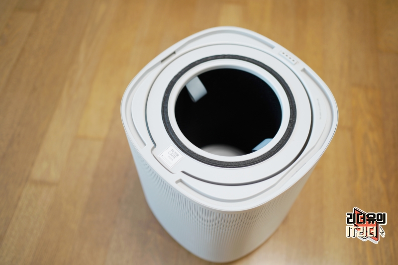 미로 맑음 공기청정기는 최초 사용시 내부 필터 비닐을 제거해 줘야 하는데요. 본체가 2단으로 분리가 되는 구조라 쉽게 필터 교체 관리를 할 수 있습니다. 상단부를 들어내면 안쪽에 비닐로 감싸진 미로 맑음 필터를 확인해 볼 수 있습니다.