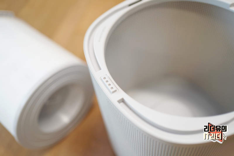 필터를 넣는 부분은 메탈 소재로 되어 있고 촘촘한 에어홀이 무려 18,000개나 있습니다. 국내 최대 에어홀 개수인데요. 내부가 보이지 않으면서 공기를 잘 흡입할 수 있는 구조라 보시면 됩니다.