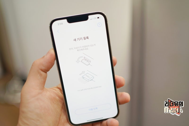 새 기기 등록에 들어가면 미로티 센서가 연결되어 있는지 확인하는 과정을 거치게 됩니다. 어떻게 넣는지 이미지로 나와 있으니 어렵지 않게 할 수 있습니다.
