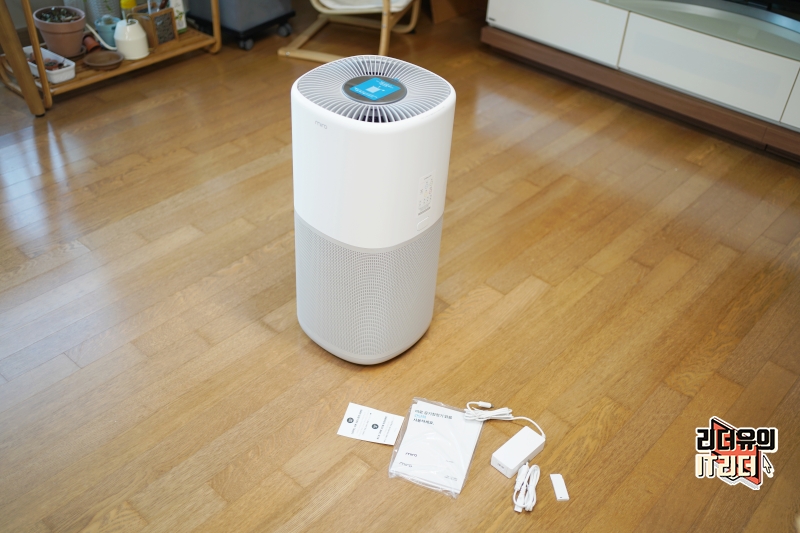 미로 맑음 공기청정기 구성품은 본체, 미로티, 필터, 어댑터, 전원선으로 구성되어 있습니다. 사이즈는 아주 크지고 작지도 않은 미들급 사이즈의 공기청정기 입니다.