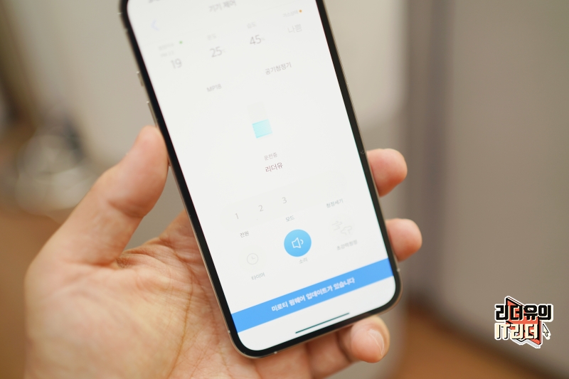 화면을 선택하면 세부 메뉴로 들어가는데요. 자동 모드, 청정세기, 타이머, 소리, 초강력 청정, 차일드락 설정까지 다 앱으로 사용이 가능합니다.