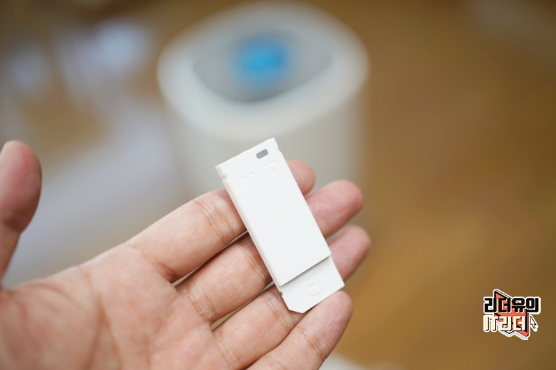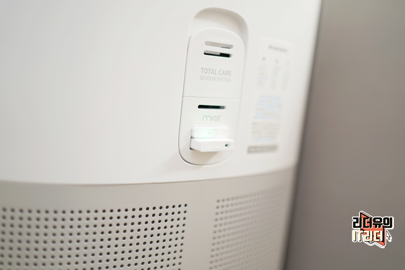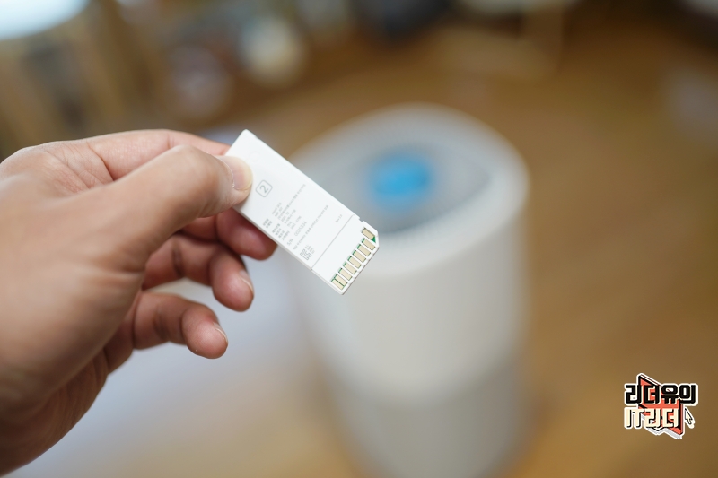 미로 맑음 공기청정기를 보면 독특한 구성품 '미로티'가 들어 있습니다. 메모리 카드처럼 생겼는데요. 이게 스마트폰과 연결을 해주는 센서 역할을 하게 됩니다. 장착 위치는 토탈케어 센서 영역에 있습니다.